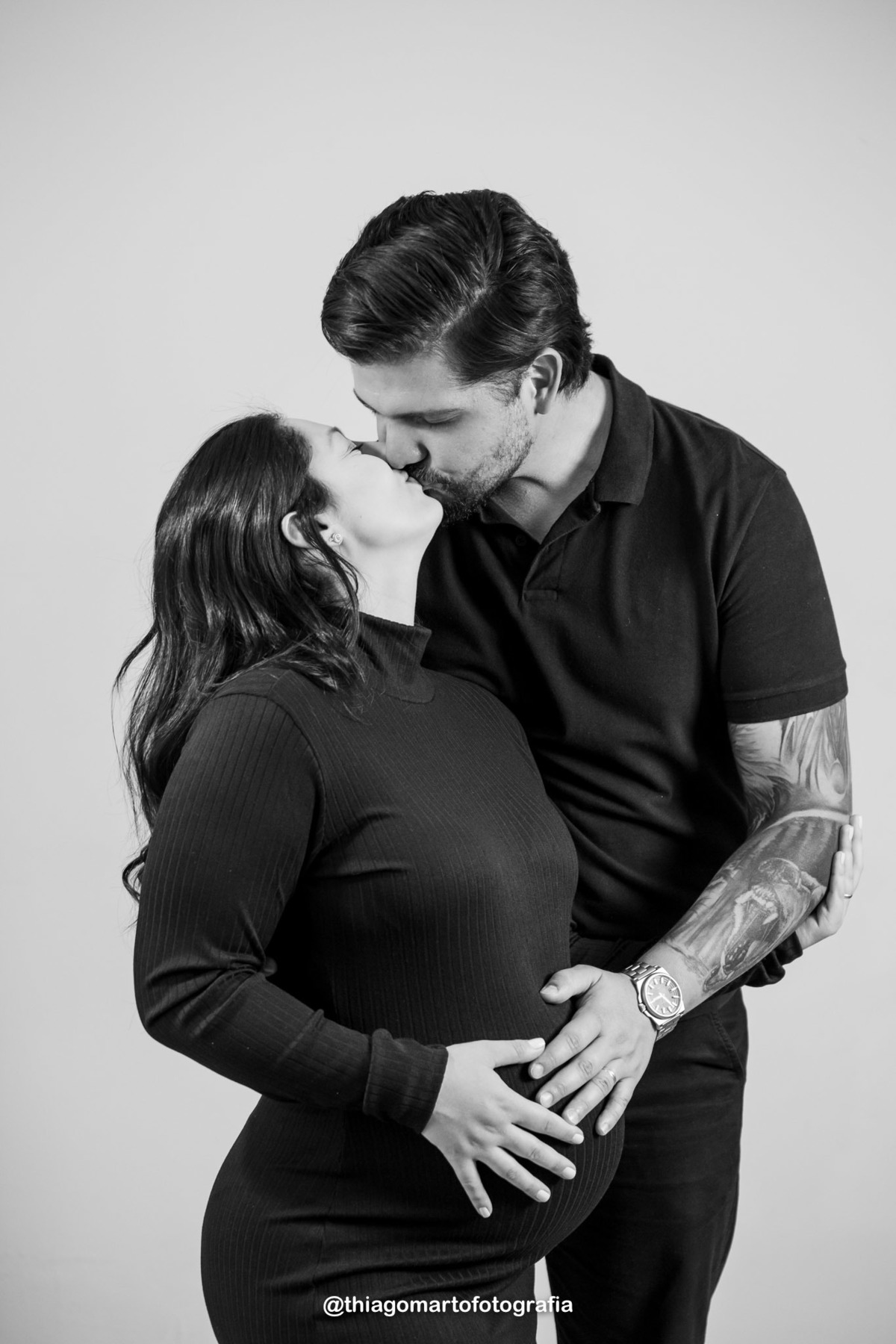 A Barbara me procurou com uma idéia em mente: fotos em estúdio, por gostar do fundo branco e ter fotos em preto e branco com aquela iluminação especial do estúdio. Atendi seu pedido, mas mudando a proposta. Fomos para a casa da família, levei as luzes de estúdio e realizamos as fotos com todo conforto dentro de casa.
