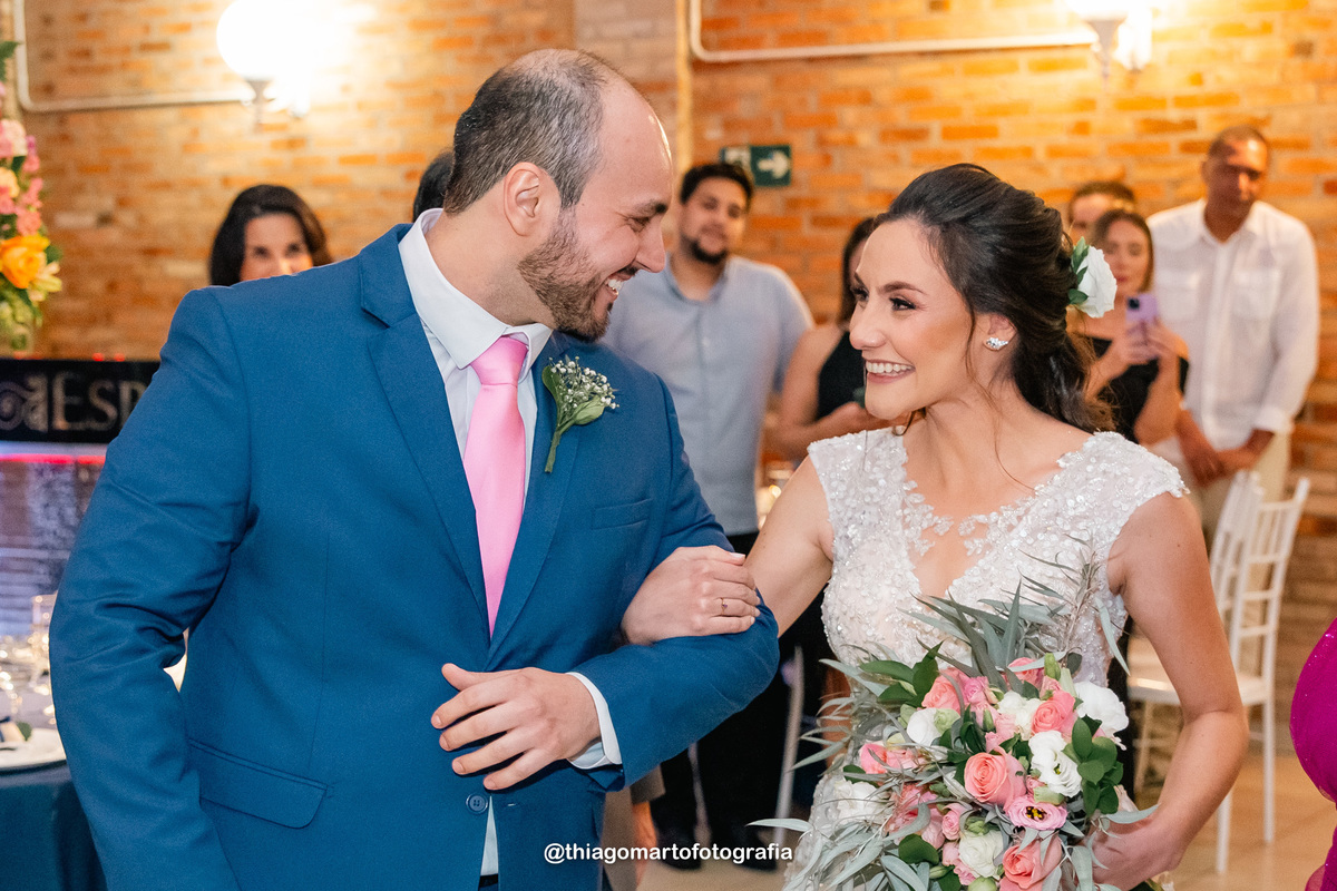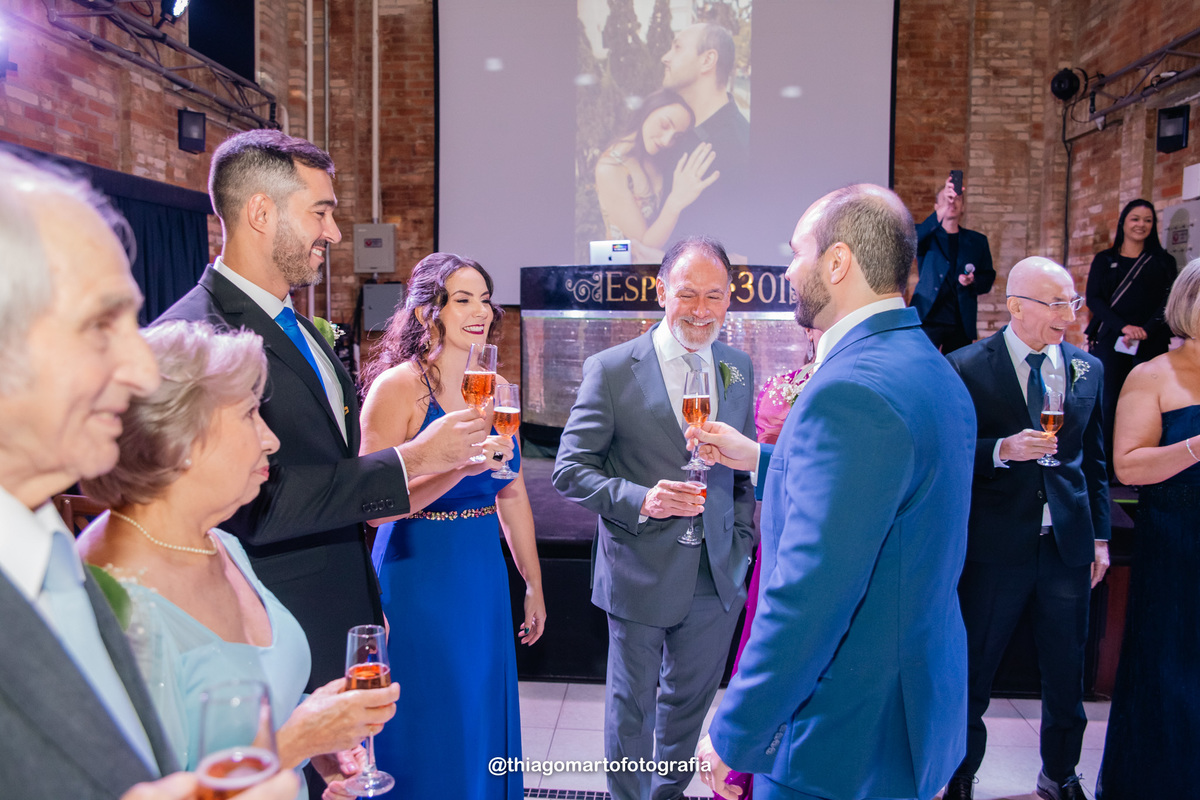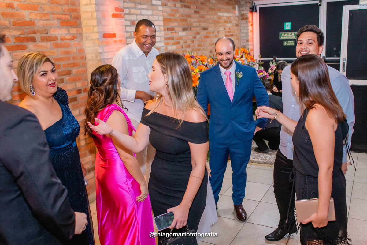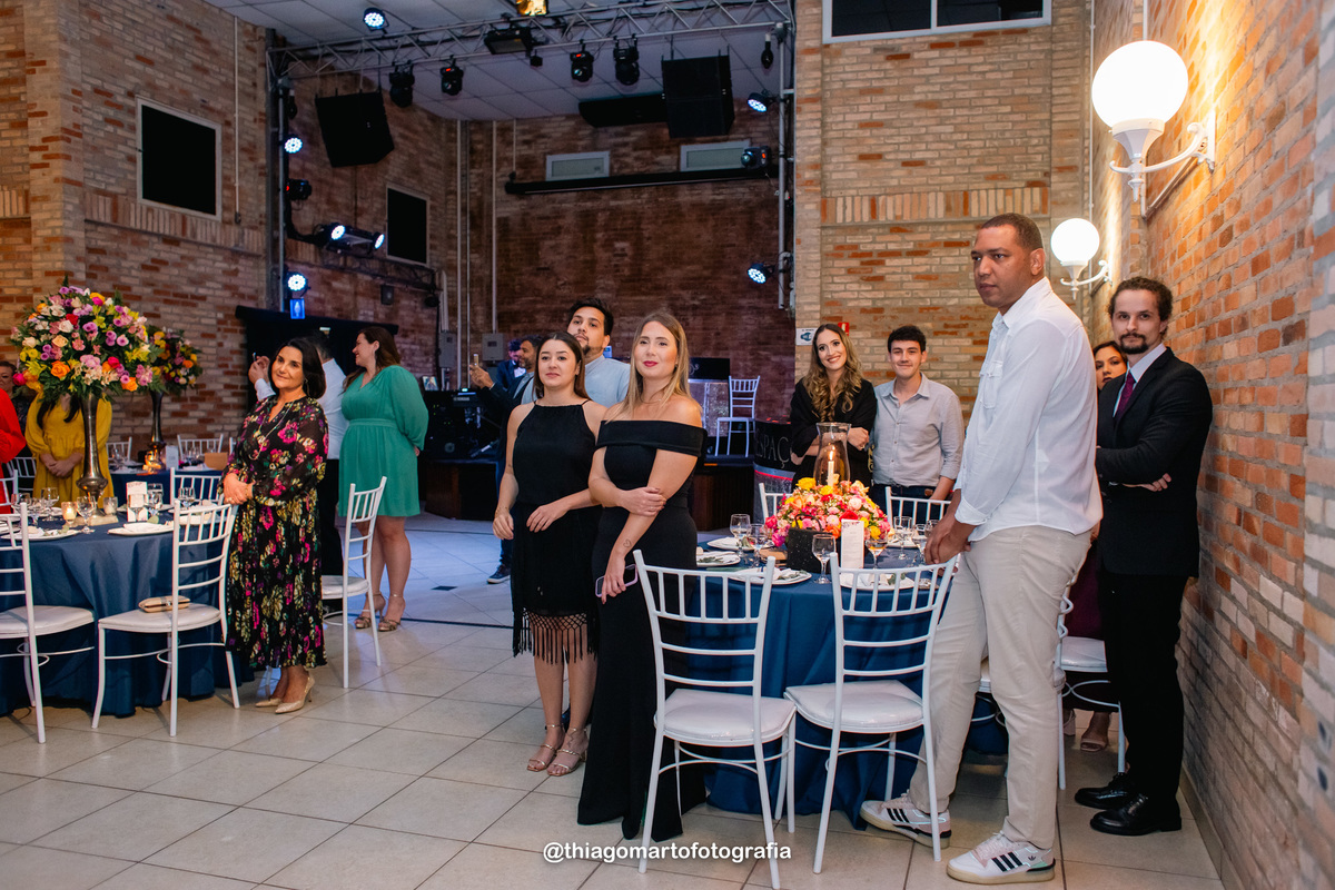 O dia foi marcado por uma atmosfera incrível de descontração e carinho. Familiares e amigos estavam à vontade, criando uma sensação acolhedora e íntima, como se todos estivessem celebrando aquele amor junto aos noivos. Não faltaram risos, abraços e momentos de pura emoção, com todos compartilhando de forma verdadeira e calorosa o início dessa nova etapa na vida do casal.