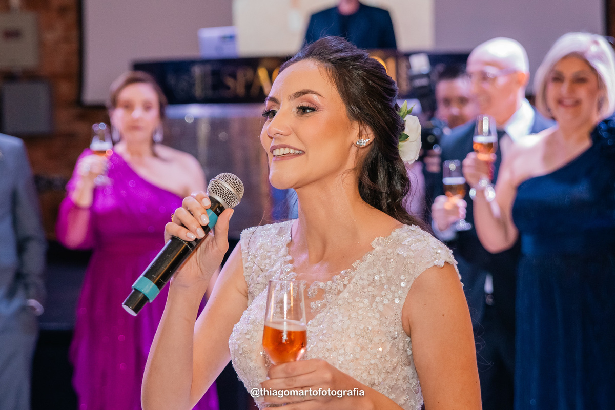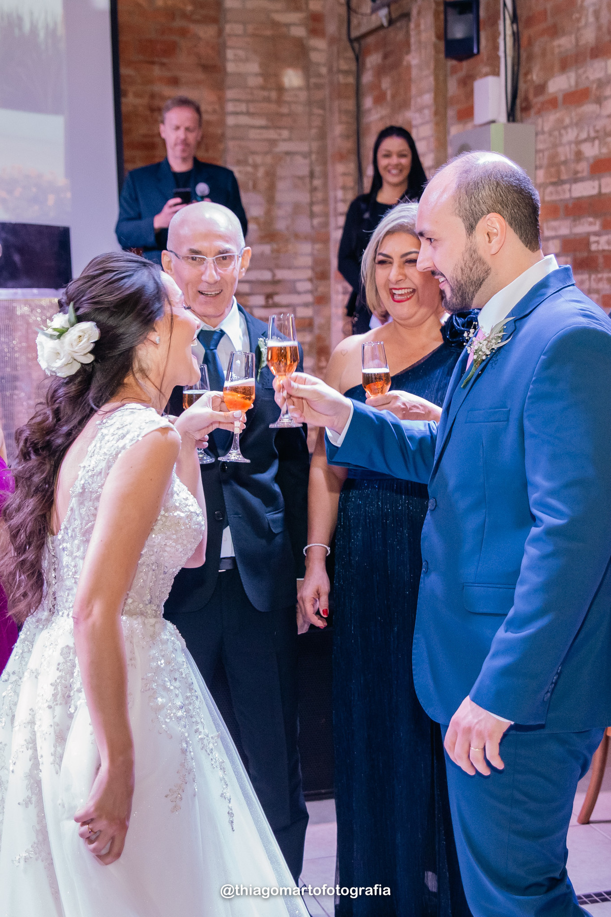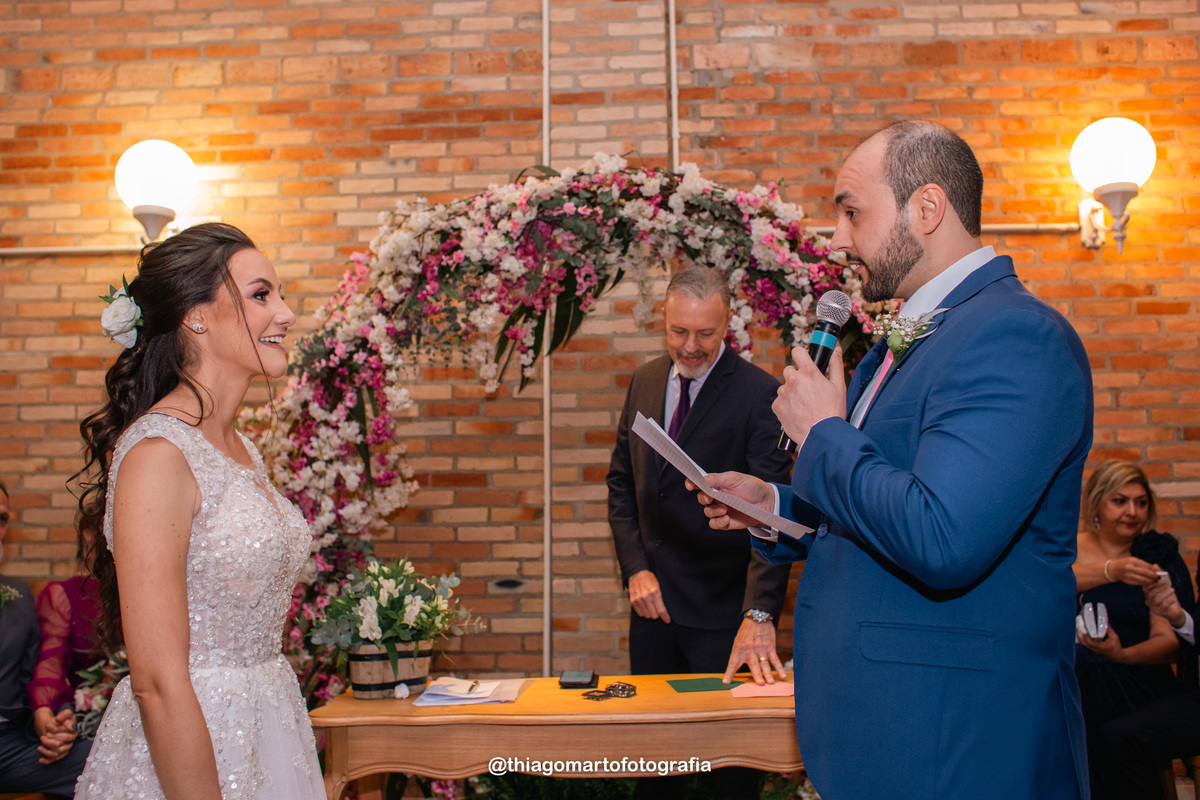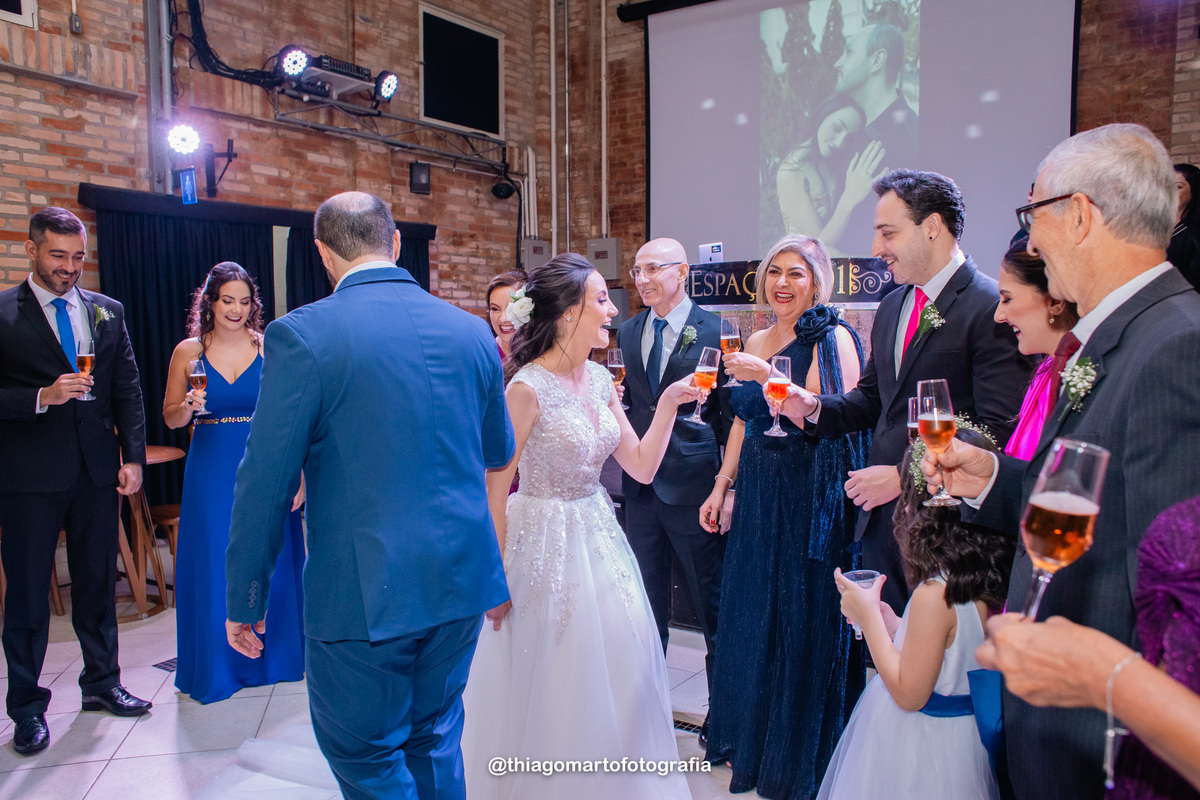 O dia foi marcado por uma atmosfera incrível de descontração e carinho. Familiares e amigos estavam à vontade, criando uma sensação acolhedora e íntima, como se todos estivessem celebrando aquele amor junto aos noivos. Não faltaram risos, abraços e momentos de pura emoção, com todos compartilhando de forma verdadeira e calorosa o início dessa nova etapa na vida do casal.