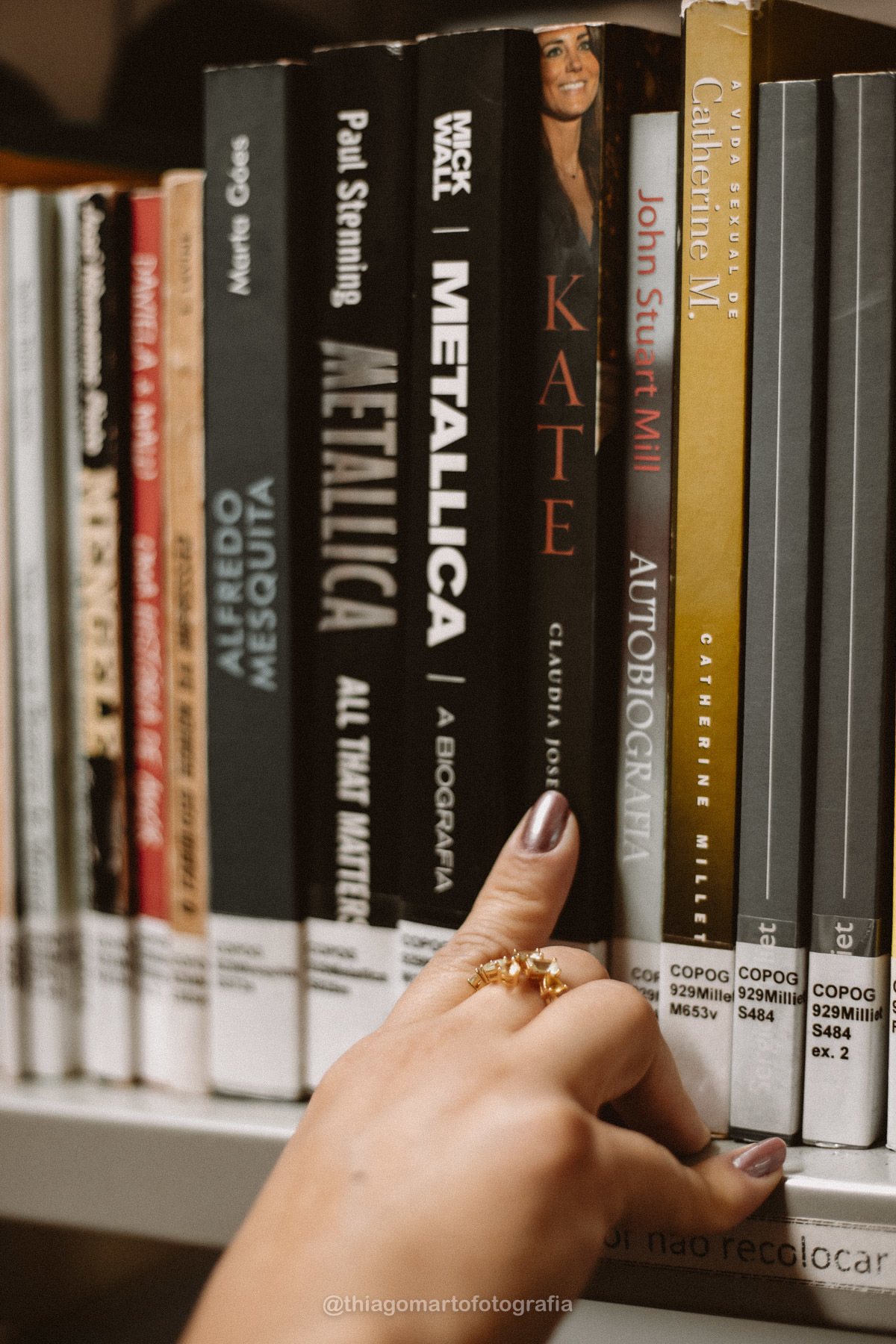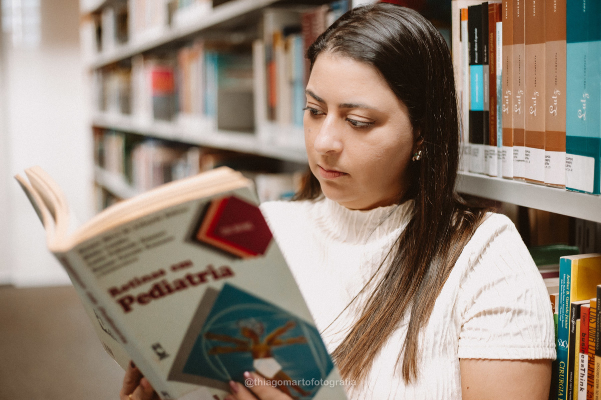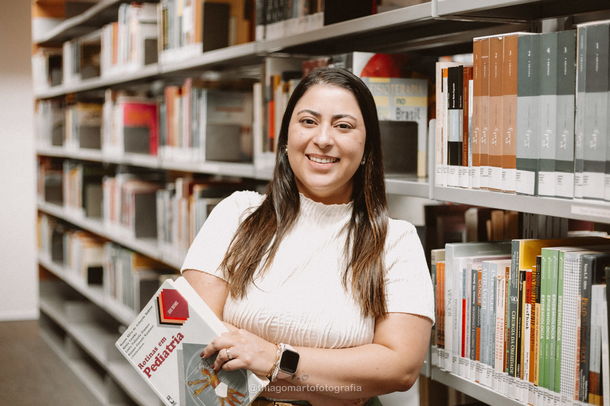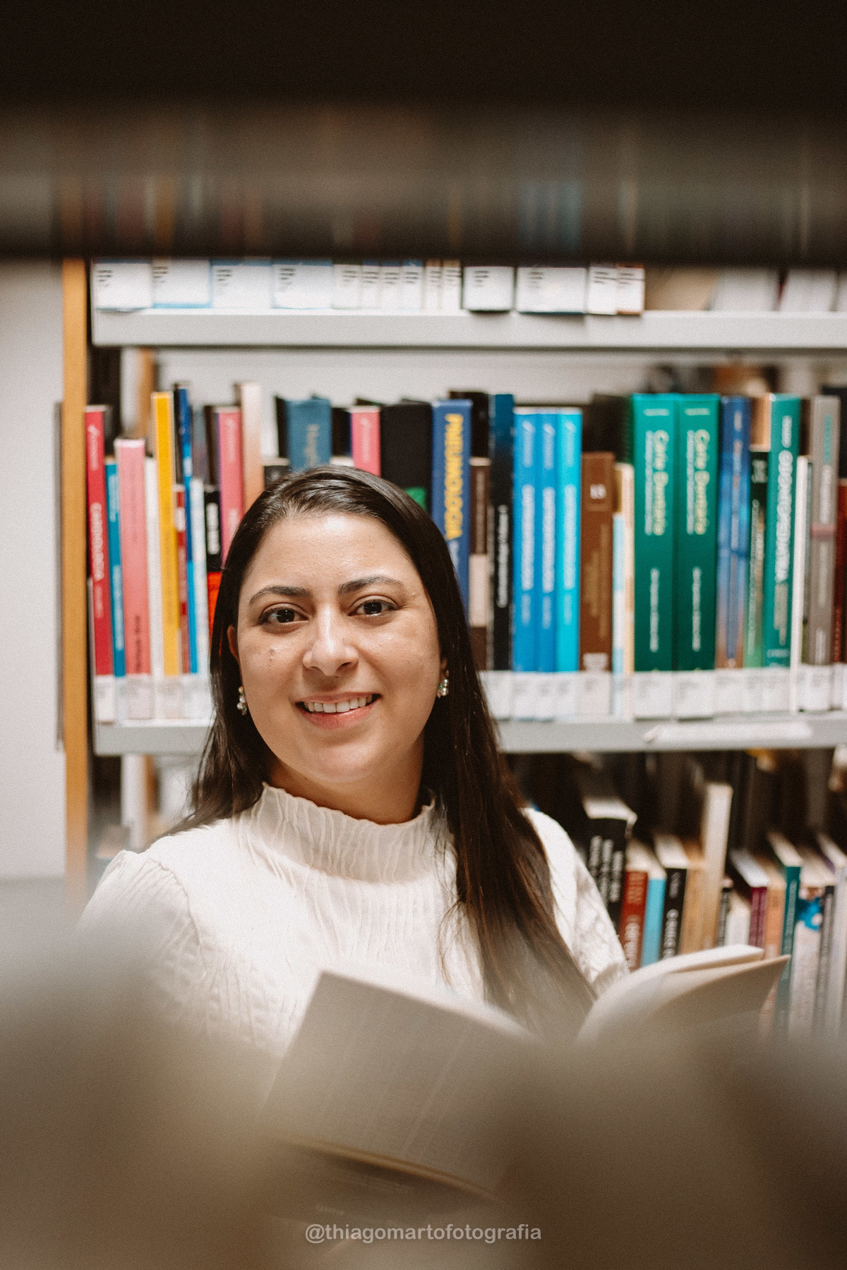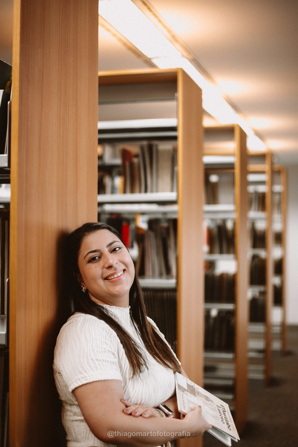 Um mini ensaio fotográfico com minha esposa, entre corredores e livros da Biblioteca Nacional de Brasília.