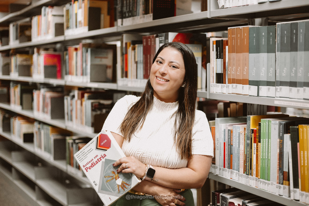 Caroline e os livros da Biblioteca Nacional de Brasília