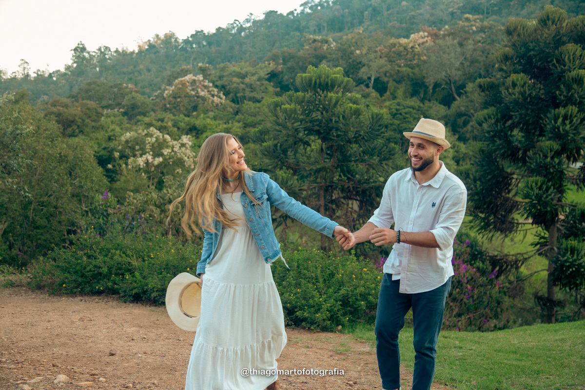 Fotografar o ensaio pré-casamento de Pedro e Michele ao pôr do sol foi uma experiência verdadeiramente memorável. No alto da montanha, com um céu deslumbrante como pano de fundo, cada momento capturado era como uma pintura da natureza se desdobrando diante de nós. À medida que o sol mergulhava lentamente no horizonte, Pedro e Michele compartilhavam sorrisos cúmplices, abraços calorosos e olhares cheios de amor, criando imagens que capturavam a essência de sua conexão.