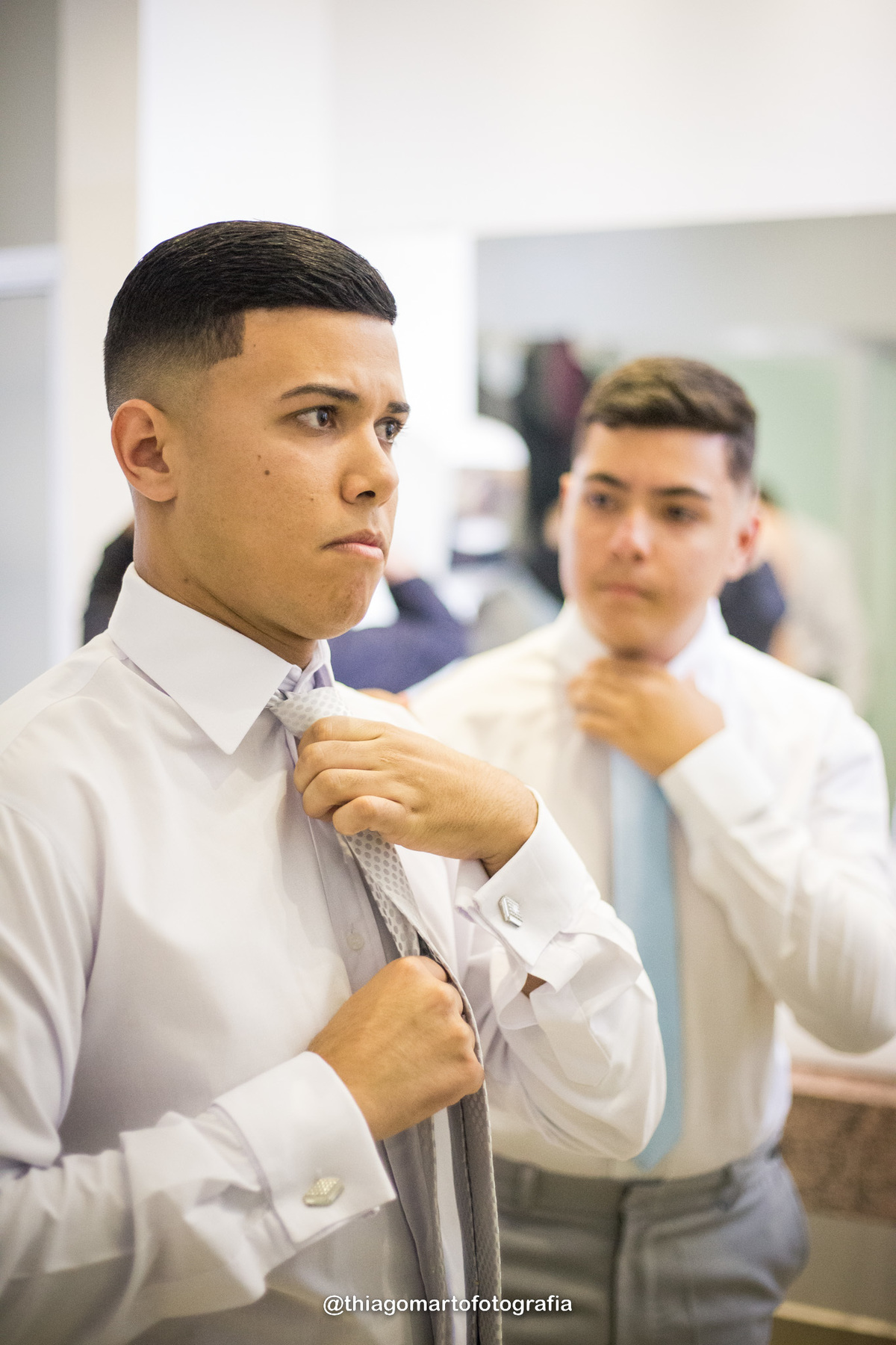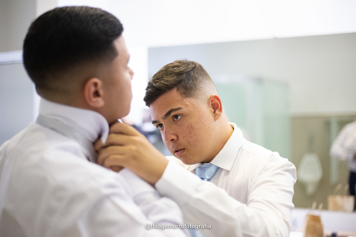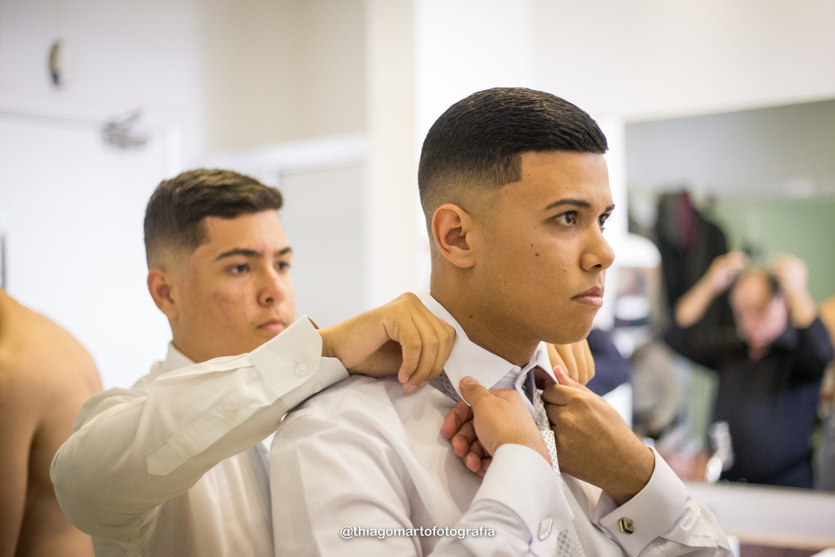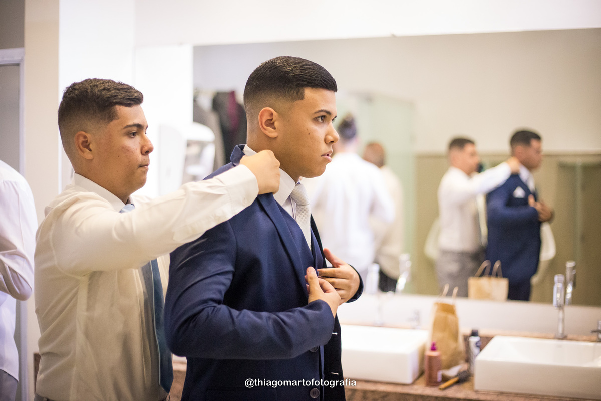 O noivo Gabriel contou com a ajuda do seu irmão mais novo, o Guilherme. A Jaque se arrumou por lá também, contando com a maquiagem da Letícia Avelino.