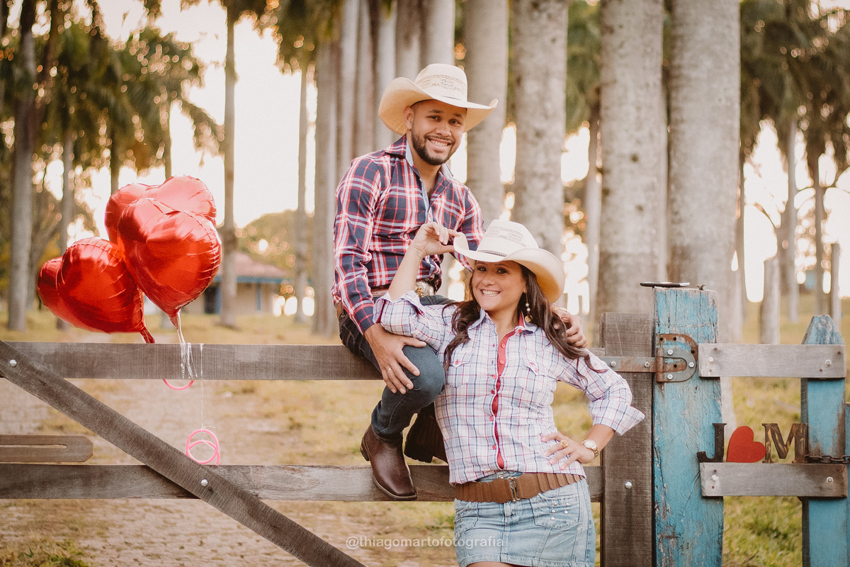 O pôr do sol, o clima aconchegante e a energia deles criaram um cenário perfeito — o tipo de ensaio pré-wedding country que combina romantismo, autenticidade e estilo de vida.
